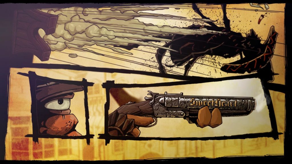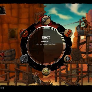 Samotný gameplay je v podstatě side scrolling platformer, do kterého jsou vloženy tahové souboje. Platformová část není moc složitá a většinou ji proběhnete docela rychle. Jen v několika kapitolách jsou části, kdy je třeba skoky dobře načasovat. Zajímavostí je, že svou zbraň použijete i mimo souboje, například na rozstřílení překážek a podobně. Nicméně, když začne souboj, začnete přesně tak jak jste do něj vešli. To znamená, že pokud jste vystříleli půl zásobníku do sudů a nenabili si zbraň, tak začínáte souboj, ve kterém pravděpodobně jeden z prvních tahů spotřebujete na nabití zbraně. To samé platí o zdraví. Takže na tyto věci je dobré dávat si pozor a nepobíhat kolem s nenabitou zbraní a polovičním zdravím. Pěkný detail je i fakt, že pokud svůj kolt nabíjíte mimo souboj, tak nabíjíte po jednom náboji. Rychlé mačkání tlačítka nabití přitom bubínek stylově roztočí, takže máte trochu pocit jako byste opravdu nabíjeli zbraň. Je to přece jen interaktivnější způsob, než zmáčknout tlačítko a dívat se na několikavteřinovou animaci, kde se vše stane samo.