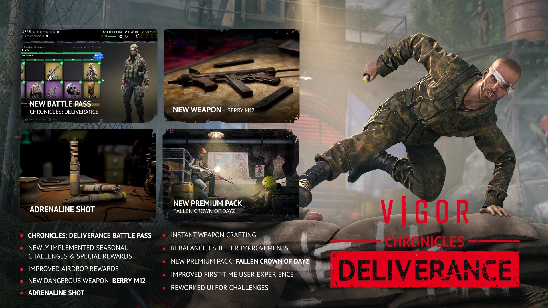 Vývojáři z největšího českého videoherního studia Bohemia Interactive představují nový update Chronicles: Deliverance – nejnovější kapitolu v sérii free-to-play looter-shooter titulu Vigor. Aktualizace přináší mimo jiné nový consumable Adrenaline Shot, který posílí výkonnost hráčovy postavy, 75úrovňový Battle Pass inspirovaný hrami ze série Arma a novou zbraň – SMG Berry M12! Objevte nově přidané sezónní výzvy, které na vás čekají.
