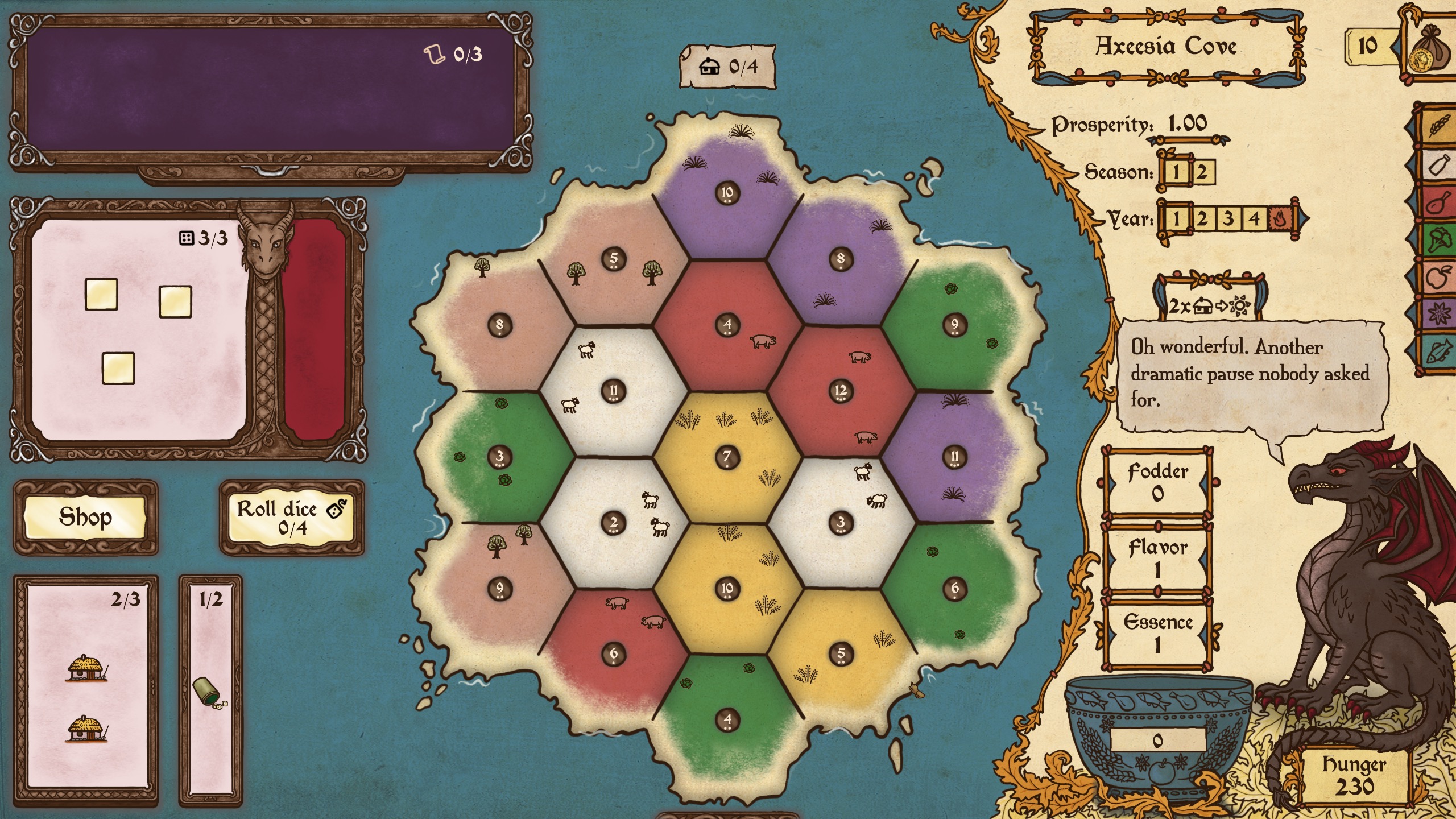 Základní premisa je jednoduchá a neúprosná: hráč se ujímá role farmáře-kuchaře, který uzavřel dvacetiletou smlouvu s drakem. Každý rok musí připravit dostatek jídla, aby uhasil jeho hlad. Pokud selže, následuje další zoufalá sezóna — a ostrov se posouvá blíž ke zkáze.