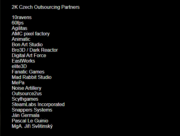 Možná ještě zkusím vysvětlit, co je Hangar 13 studio, a proč někdy mluvím o 2K Czech a někdy o Hangar 13. Ono je to tak, že 2k Czech jsme nadále my, stále existuje jako legální entita. V 2k Czech 90 % zaměstnanců pracuje pro Hangar 13 studio, což je brand, který sdružuje studio v Californii, v Brightonu v Anglii a studia v Praze a Brně. To je to, čemu říkáme Hangar 13. V 2K Czech máme ještě IT oddělení, to bude těch pět až deset procent zaměstnanců, kteří dělají pro 2K Games různou správu online servisů nebo všeho, co se týče jakési údržby sítí a provozu síťových služeb pro 2K Games hry atp. Proto 2k Czech a Hangar 13. Nevím, jestli je takto pochopitelné ale pokouším se.