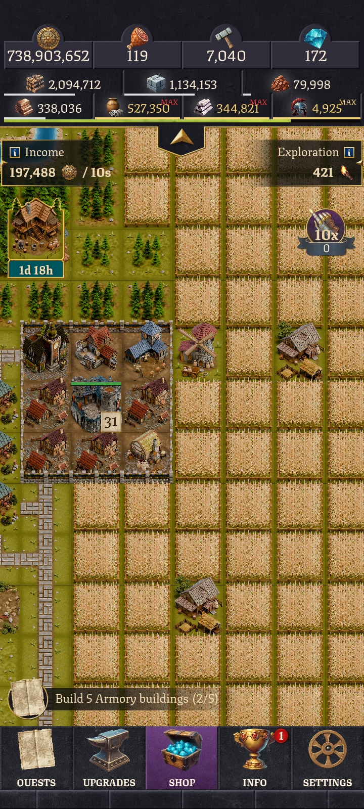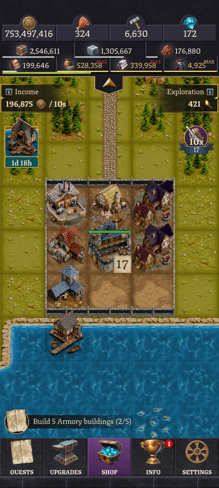 • postupné levelování s odemykáním nových budov, vylepšení a herních možností