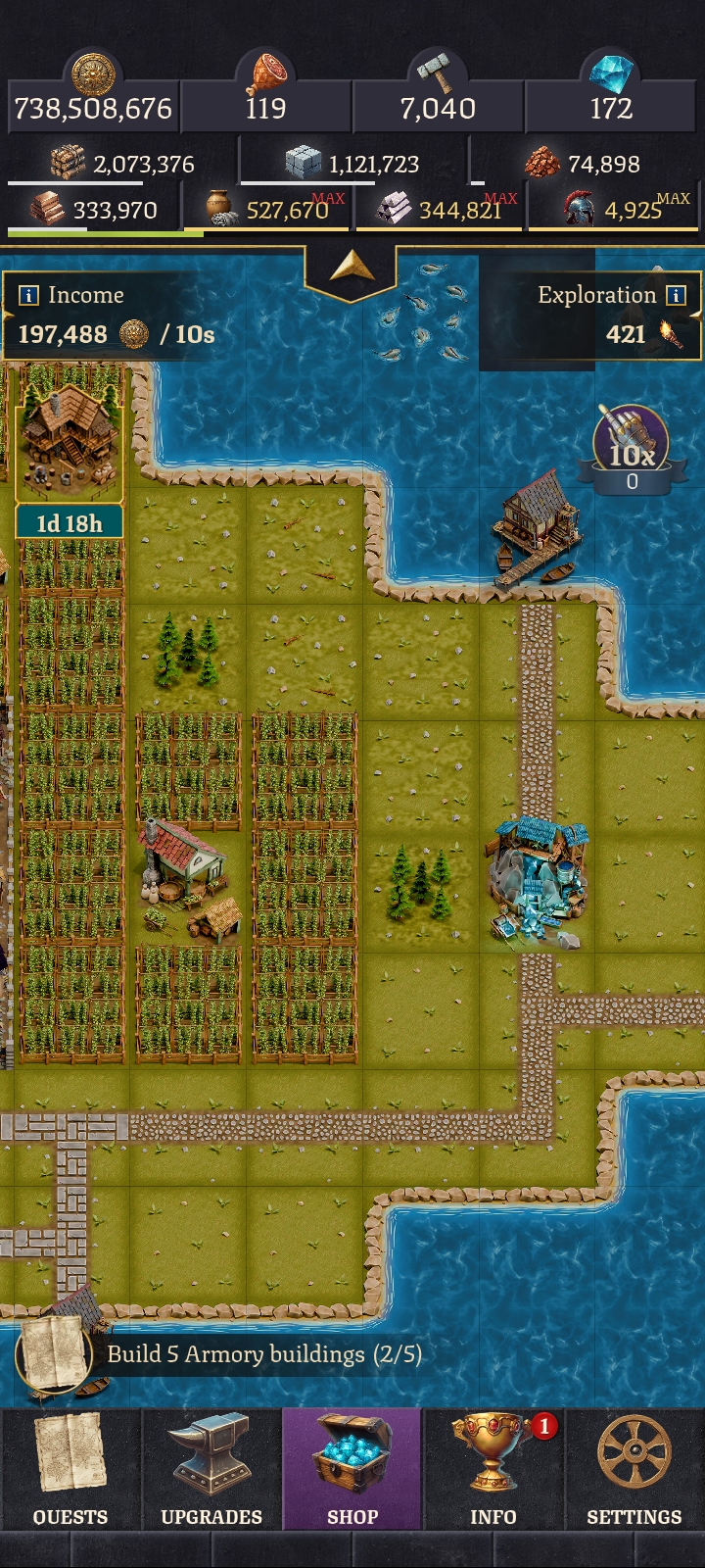 Hlavní prvky hry Legacy of Kings: Idle Builder