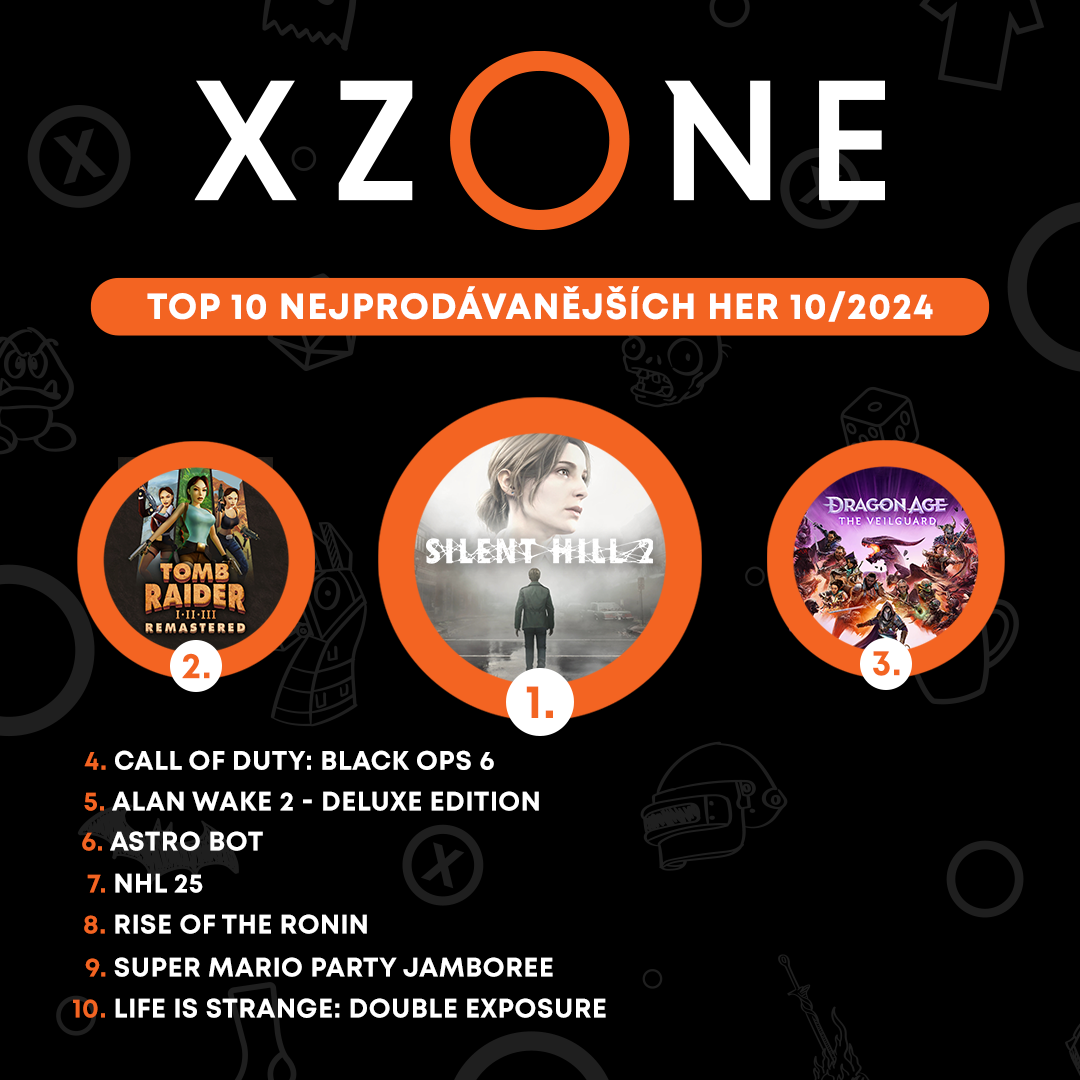 Říjen byl plný velkých herních novinek, které se všechny zvládly umístit do herního top ten. Návrat kultovní klasiky Silent Hill 2 z éry PlayStation 2 se však u hráčů těšil největšímu zájmu. Na druhém místě se umístila další klasika – remasterované dobrodružství Lary Croft, které se po digitální premiéře dočkalo fyzického vydání. Třetí pozice pak patří dlouho očekávanému pokračování Dragon Age: The Veilguard, jenž mělo na umístění v žebříčku pouhý jeden den. „Všechny hry na stupních vítězů dokazují, že se v Xzone stále skvěle daří titulům pro hardcore hráče. To platí i pro krabicové vydání Alan Wake 2, na které naši zákazníci – sběratelé – vydrželi trpělivě čekat celý rok od původního digitálního vydání,” vysvětluje Jan Bobrovský za Xzone, že i opožděné vydání her v krabičce má smysl.