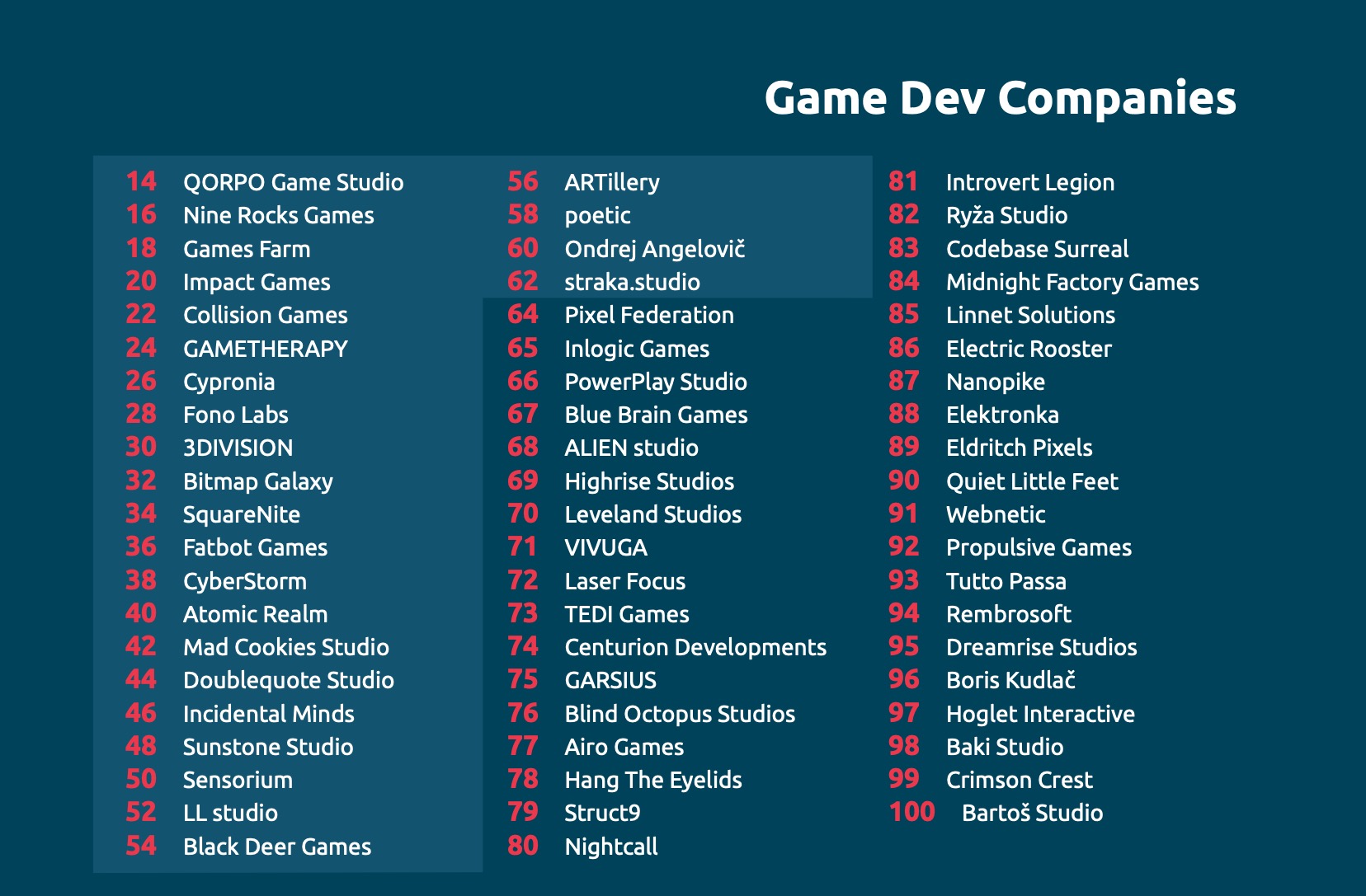 Podle katalogu je na Slovensku aktuálně aktivních 77 herních společností. Největší z nich je dlouholeté bratislavské studio Pixel Federation, známé například hrami TrainStation nebo Diggy’s Adventure.