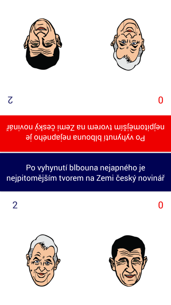 Předseda strany ANO, Andrej Babiš, a nesmrtelná hlava státu, Miloš Zeman, vypotili za svou politickou kariéru spoustu hlášek, díky kterým se zapsali do povědomí svých voličů jako kontroverzní osoby. Zda-li je to dobře nebo špatně, to už si musí každý srovnat v hlavě sám. Faktem ale je, že „Andrej s Milošem na nás dennodenně chrlí výroky měnící dějiny!“3  Studentská skupina Barevná klávesnice se rozhodla do soutěže Nejaktivnější středoškolák ČR přihlásit jednoduchou mobilní hru, založenou na top výběru jejich perel. V ní spolu soutěží dva hráči, kteří se snaží uhodnout, komu zobrazená hláška patří. Ten, kdo jako první uhodne deset výroků, vyhrává. V případě nesprávně zvolené odpovědi zazní z Babišových úst „Sorry jako“, nebo bude lítat Zemanovo „Kunda“ sem, „Kunda“ tam.
