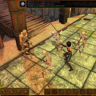 Boj v této hře je skutečně jako opravdový. Všechny pohyby a údery jsou reálné. Když na vás vběhne partička kostlivců, z toho dva mají brnění a jeden je lilipután, nastává pro vás opravdu problém. To byste nevěřili, jak vás dokáže takový malý kostlivec polechtat na ledvinách. Protože je nižší a vy vykrýváte jen standardní údery vašich obrněných kostlivců.