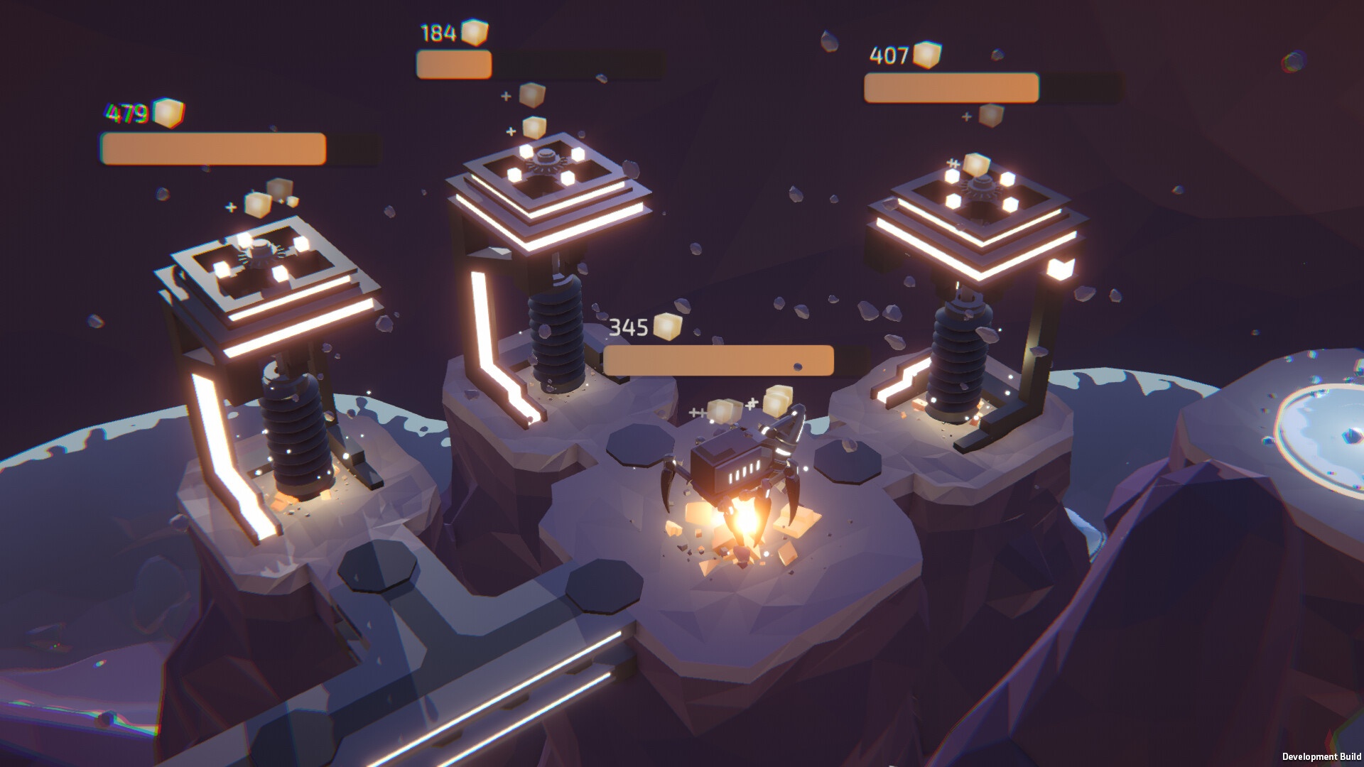 Ve hře těžíte dva základní zdroje: Stavium slouží jako stavební materiál pro cesty a věže, zatímco Vítězium je vzácný minerál, který je hlavním cílem každé mise. Získané suroviny investujete do rozšiřování těžebního i bojového arsenálu a postupně si budujete silnější pozici na každé planetě.